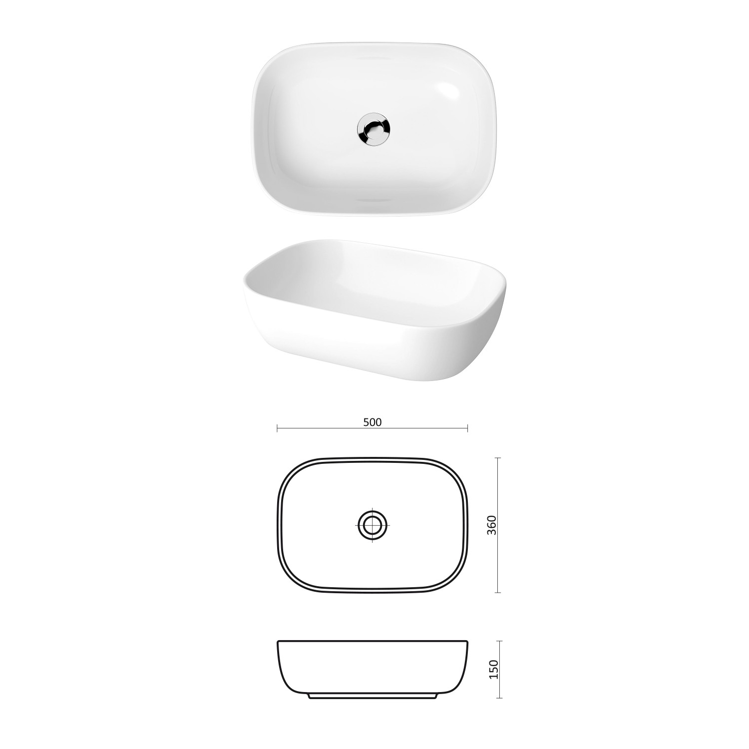 - Две порцеланови мивки Moduo с размери в мм: Ш – 500 / В – 150 / Д – 355